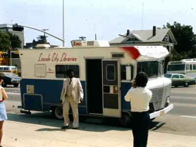 A “Mini-Bookmobile” (a converted Winnebago!) launched with 17 stops. By 1981, service expanded to 23 locations and nearly 34,000 annual checkouts.